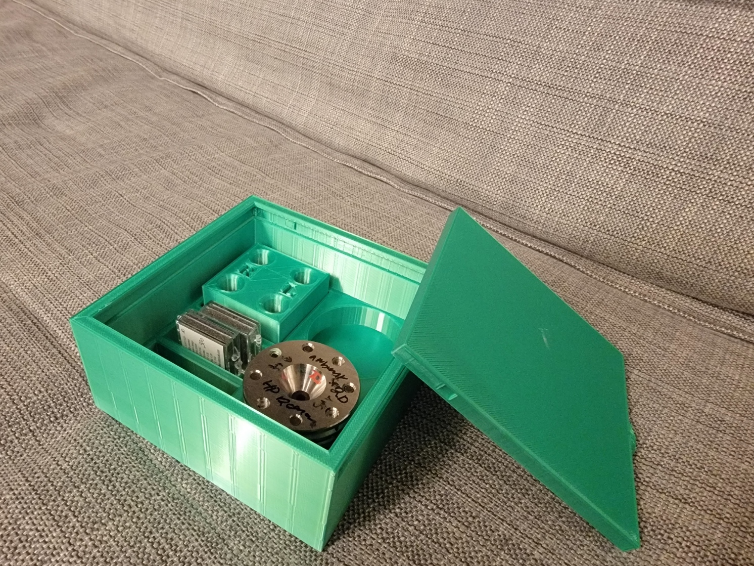 Keeping diamond anvil cells organized can be challenging, so I designed a dedicated storage box to securely hold diamond anvil cells, screw holders, and diamond boxes in one place.